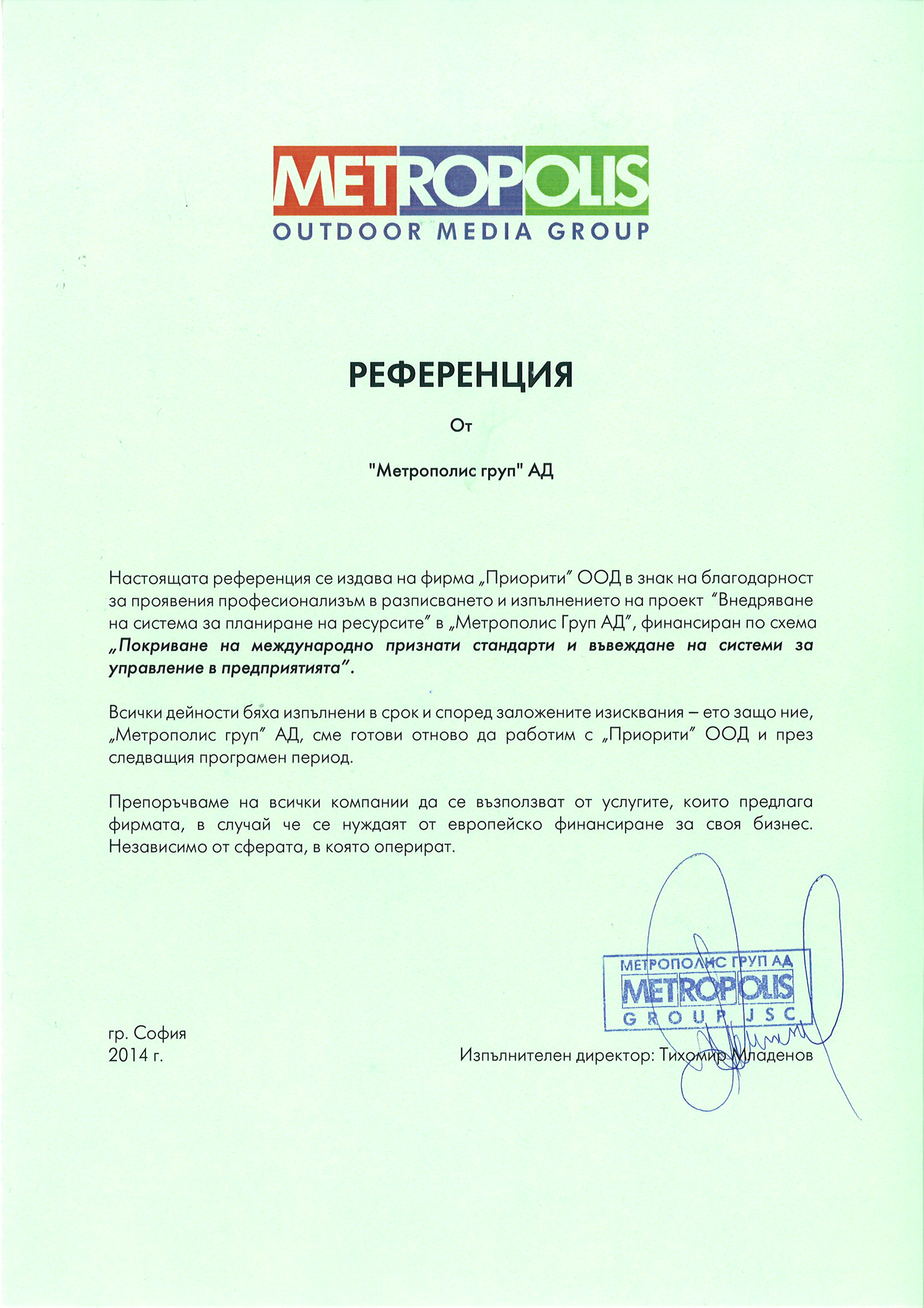 Считаме себе си за постоянен генератор на идеи, винаги авангардни и добри ученици на най-добрите бизнес модели в света, но и практици при адаптирането им към нашата икономическа и социална среда. Задълбочените ни познания в областта на европейския съюз, нормативната рамка на общността и възможностите за финансиране са в резултат на 14 години опит и експертиза от два пълни оперативни периода.